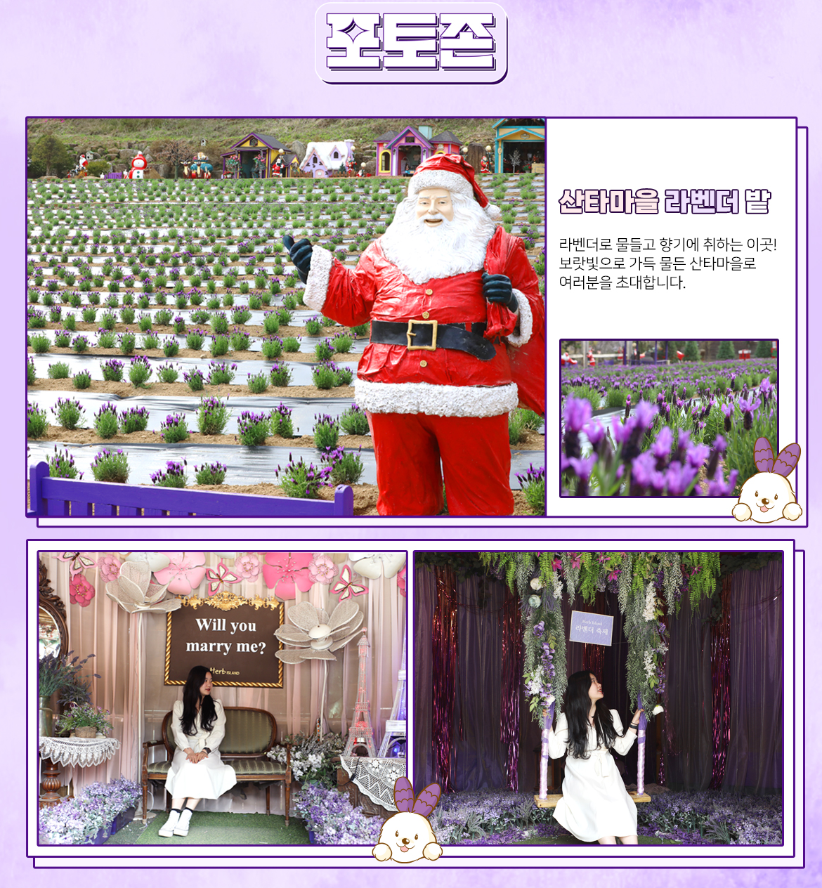 이번 2023 여름, 경기 포천 허브아일랜드에서 '2023 라벤더 축제'가 보랏빛 화려한 세계로 여러분을 초대한다. 허브아일랜드는 4가지 구성인 '힐링존', '산타존', '베네치아존', '향기존'으로 구성되어 있으며, 현재 4월 22일부터 7월 1일까지 진행중인 라벤더 밭 축제에서는 끝없는 보라색 바다의 아름다움에 감탄할 수 있을 것이다.(장마철 시작시 종료) 향긋한 라벤더 향을 경험하고, 라벤더에 대한 지식을 배울 수 있다. 가족과 함께 즐길 수 있는 활동과 아이들을 위한 이벤트도 준비되어 있는 기분 좋은 여행을 떠나보자. 장마가 오는대로 종료가 된다고 하니 어서 아름다운 보라색 라벤더의 향기에 휩싸여 평화로운 산책, 그리고 수많은 라벤더 밭과 정원 사이를 거닐며 힐링을 즐겨보자. 허브아일랜드는 공유일, 설날, 추석에도 정상운영한다고 하며, 특히 현충일(6/6일)도 운영을 한다고 하니, 여름에 더더욱 좋은 소식이 아닐수가 없다!
